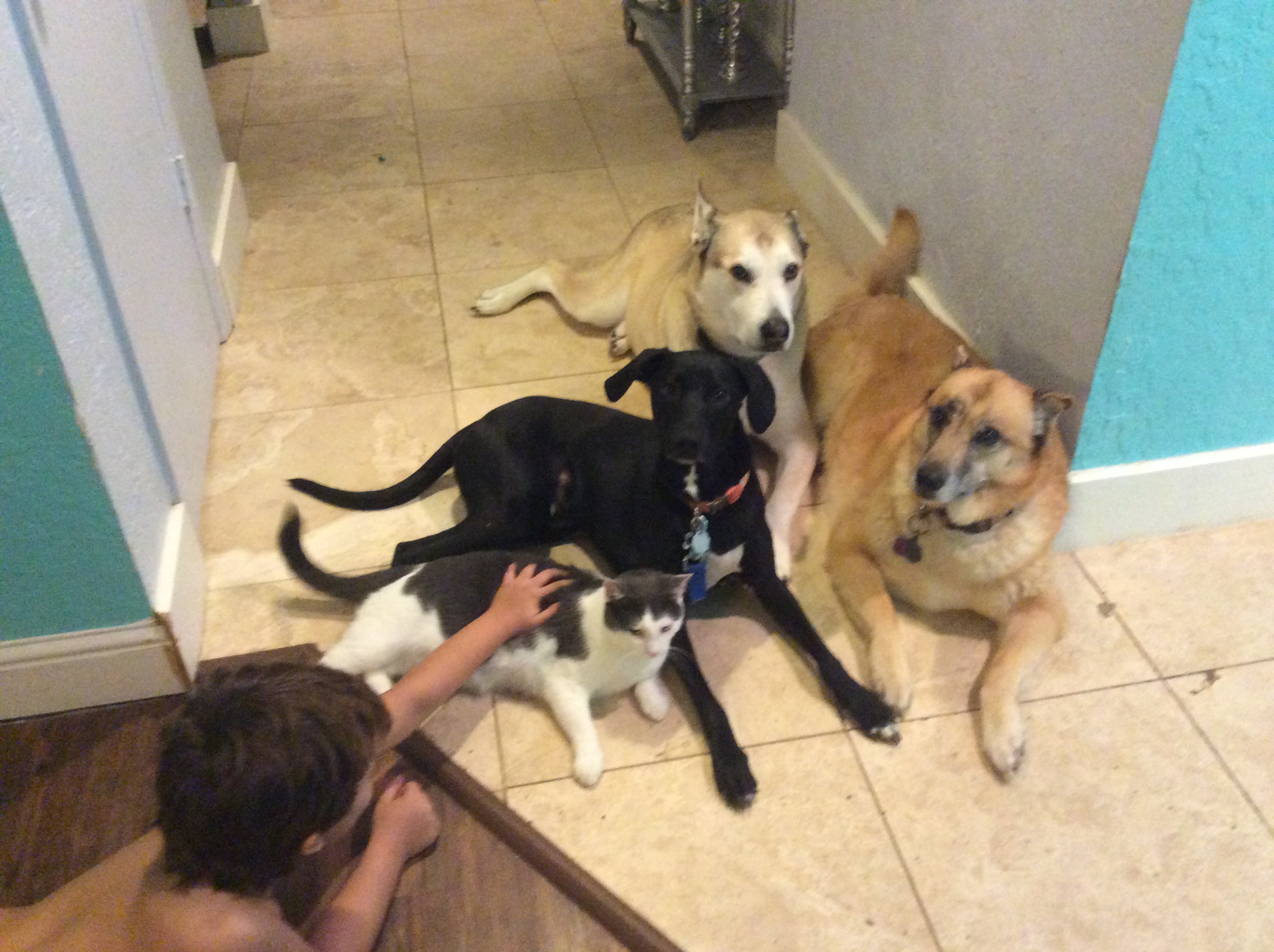 My son, Ryar, Phoenix the cat, Murphy, Osi (named after Osi Umenyiora) and Matilda. Great pets!!